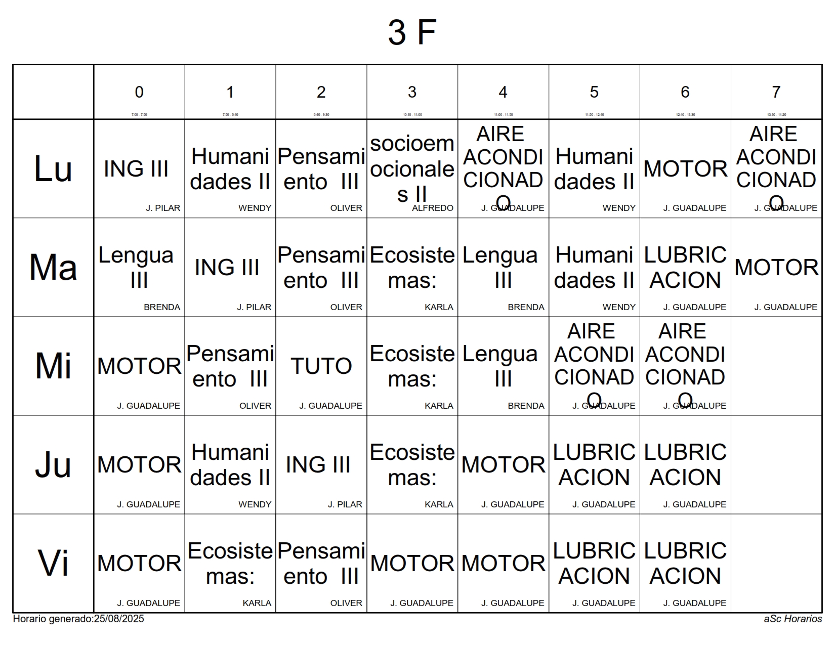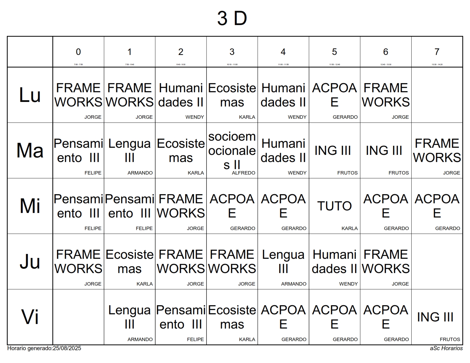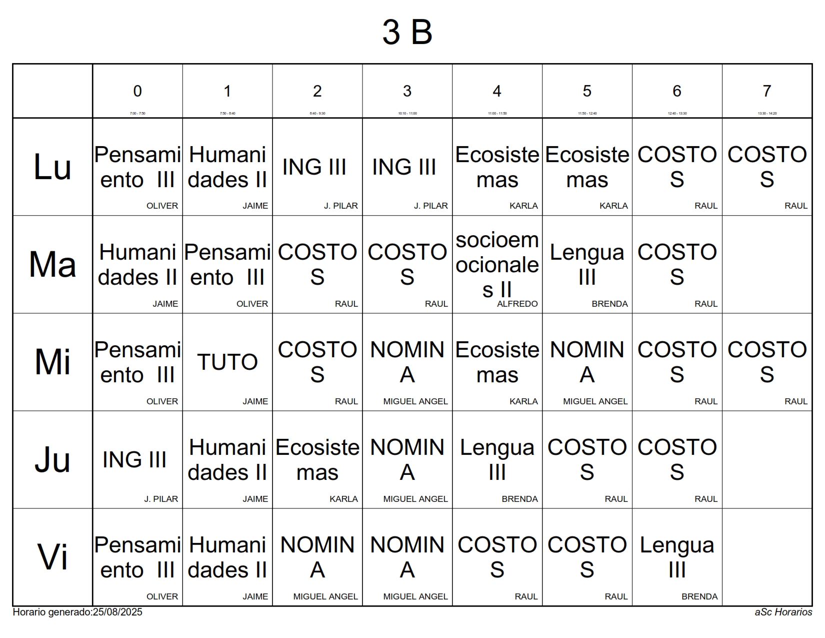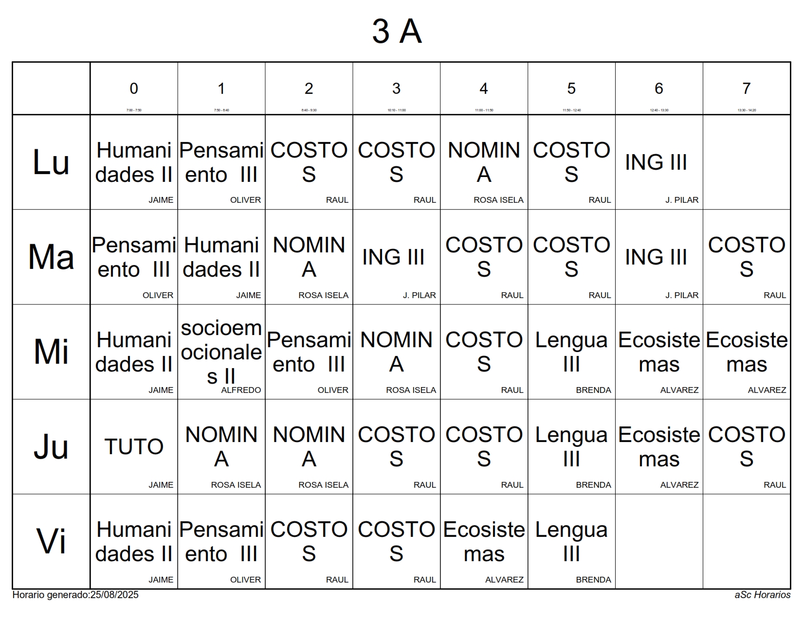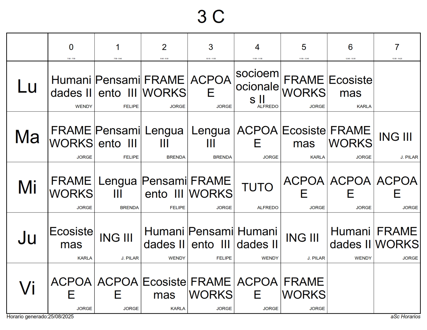 A continuación les presentamos los horarios por grupos para el semestre Agosto 2025 – Enero 2026, recuerda que estos horarios pueden sufrir cambios los cuales serán notificados directamente en cada aula.
