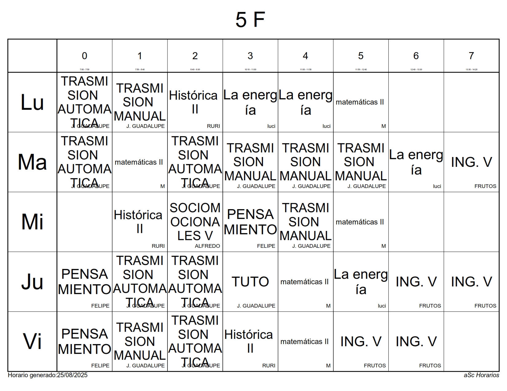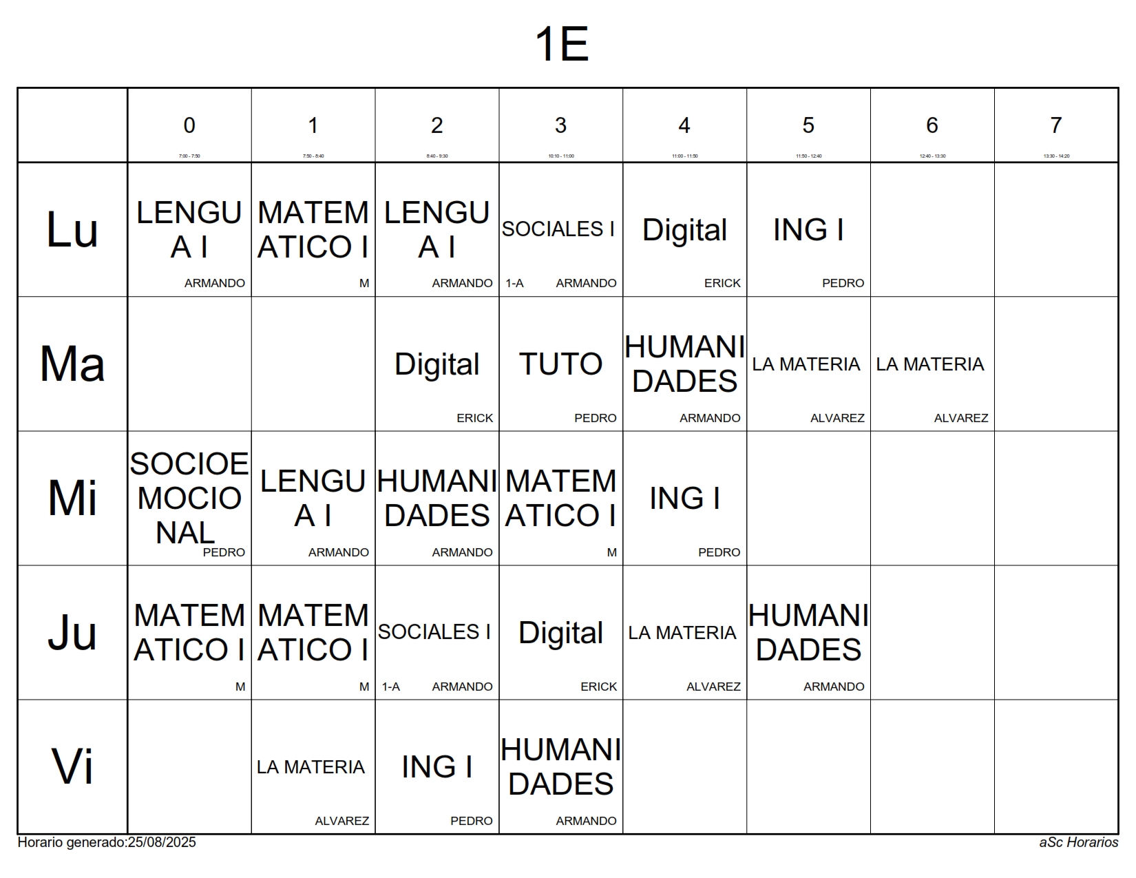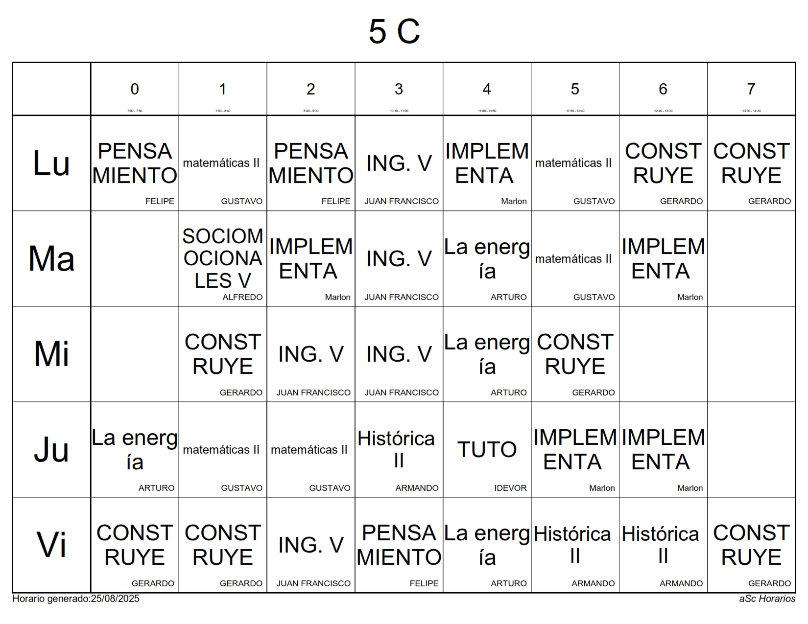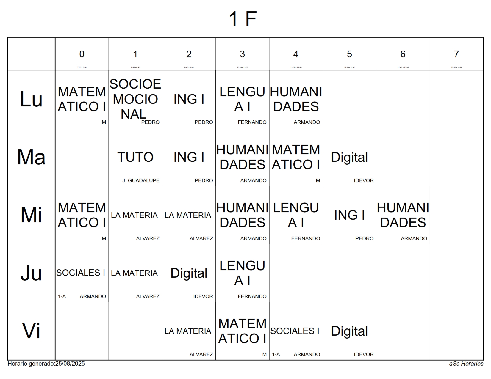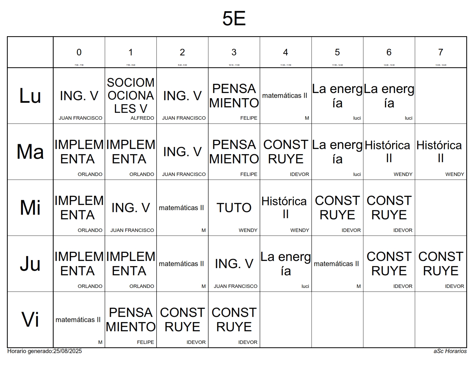 A continuación les presentamos los horarios por grupos para el semestre Agosto 2025 – Enero 2026, recuerda que estos horarios pueden sufrir cambios los cuales serán notificados directamente en cada aula.