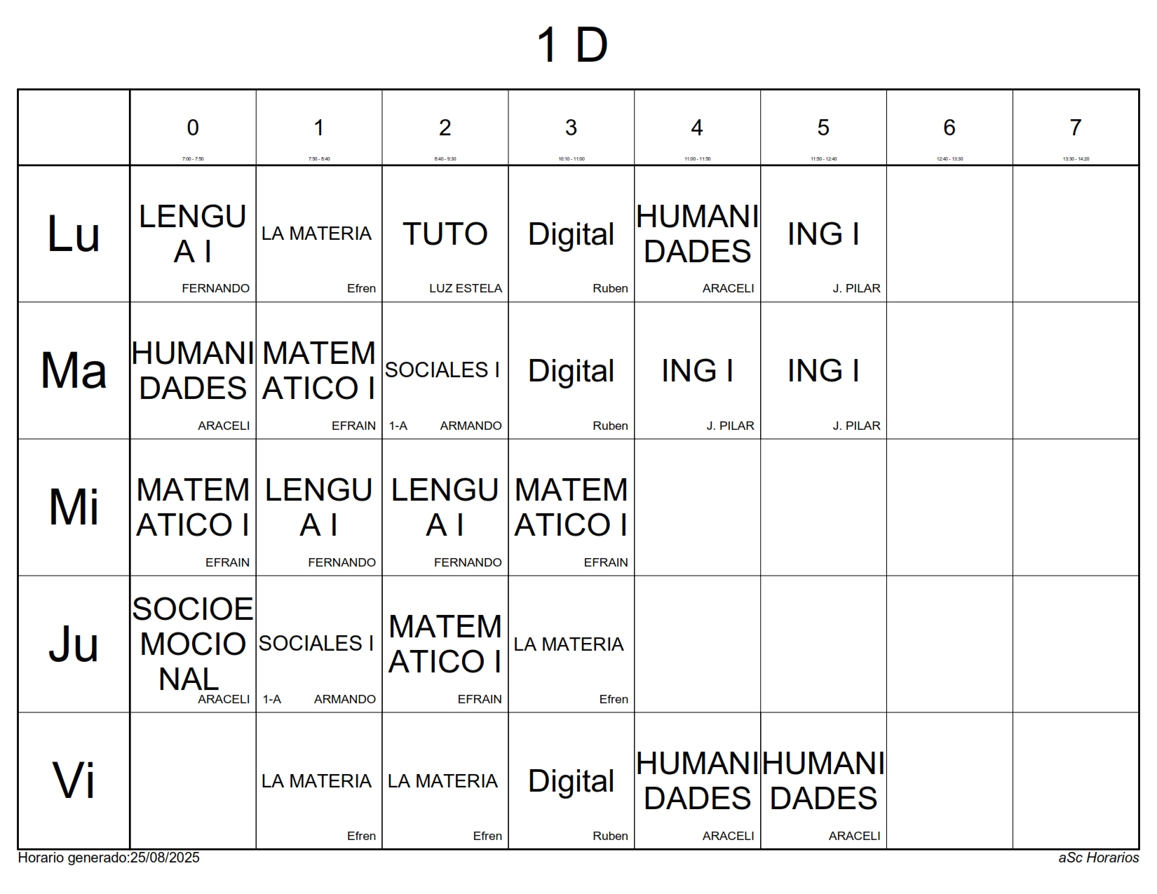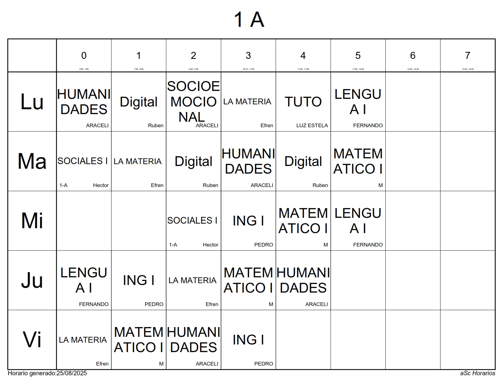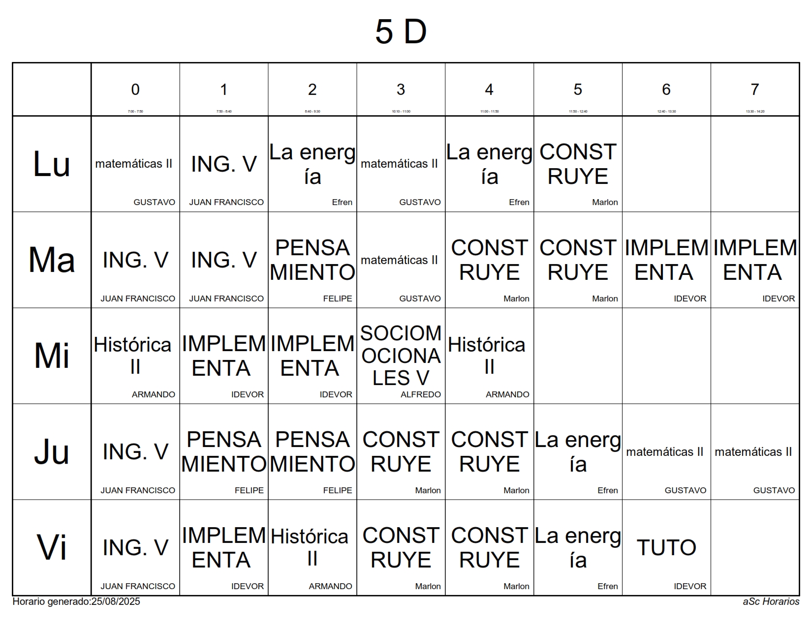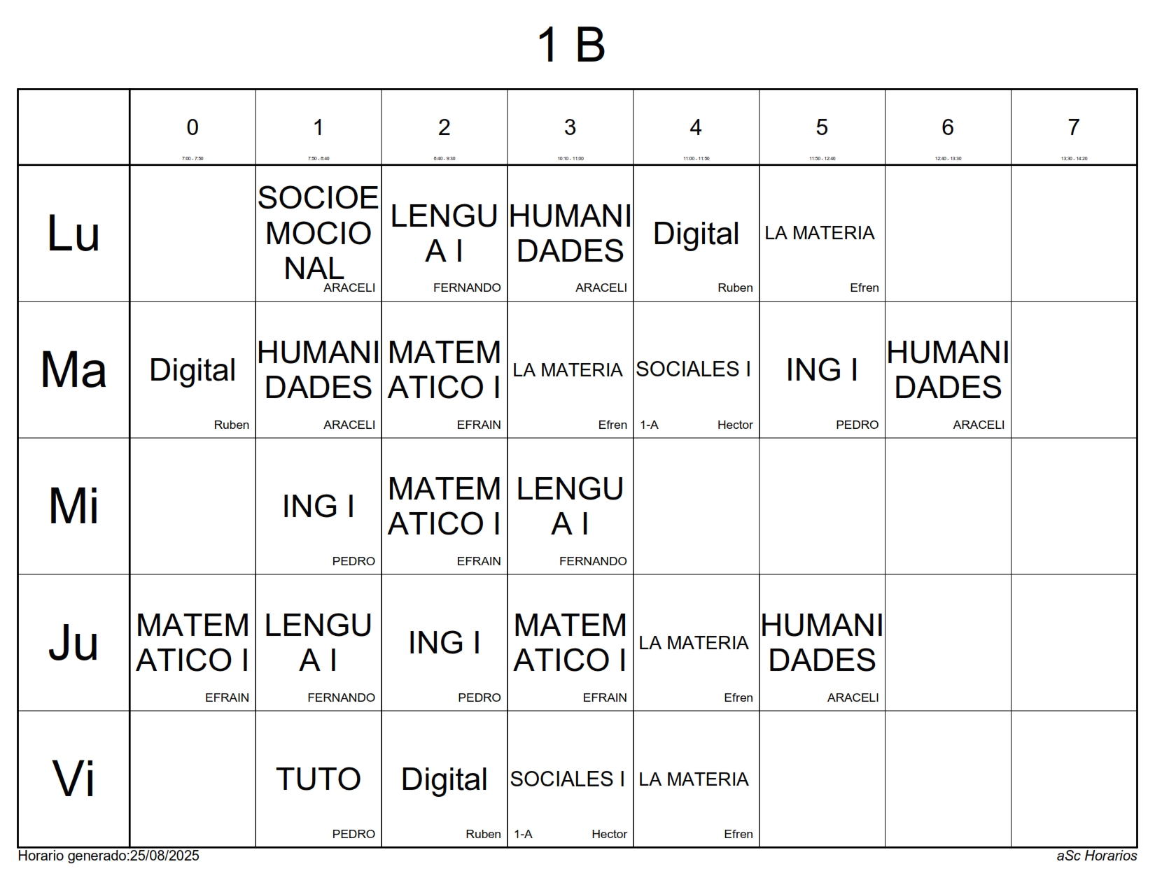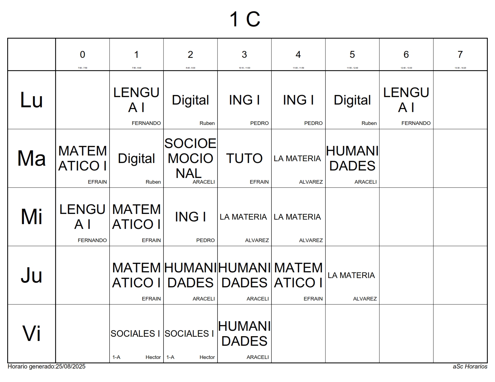 A continuación les presentamos los horarios por grupos para el semestre Agosto 2025 – Enero 2026, recuerda que estos horarios pueden sufrir cambios los cuales serán notificados directamente en cada aula.
